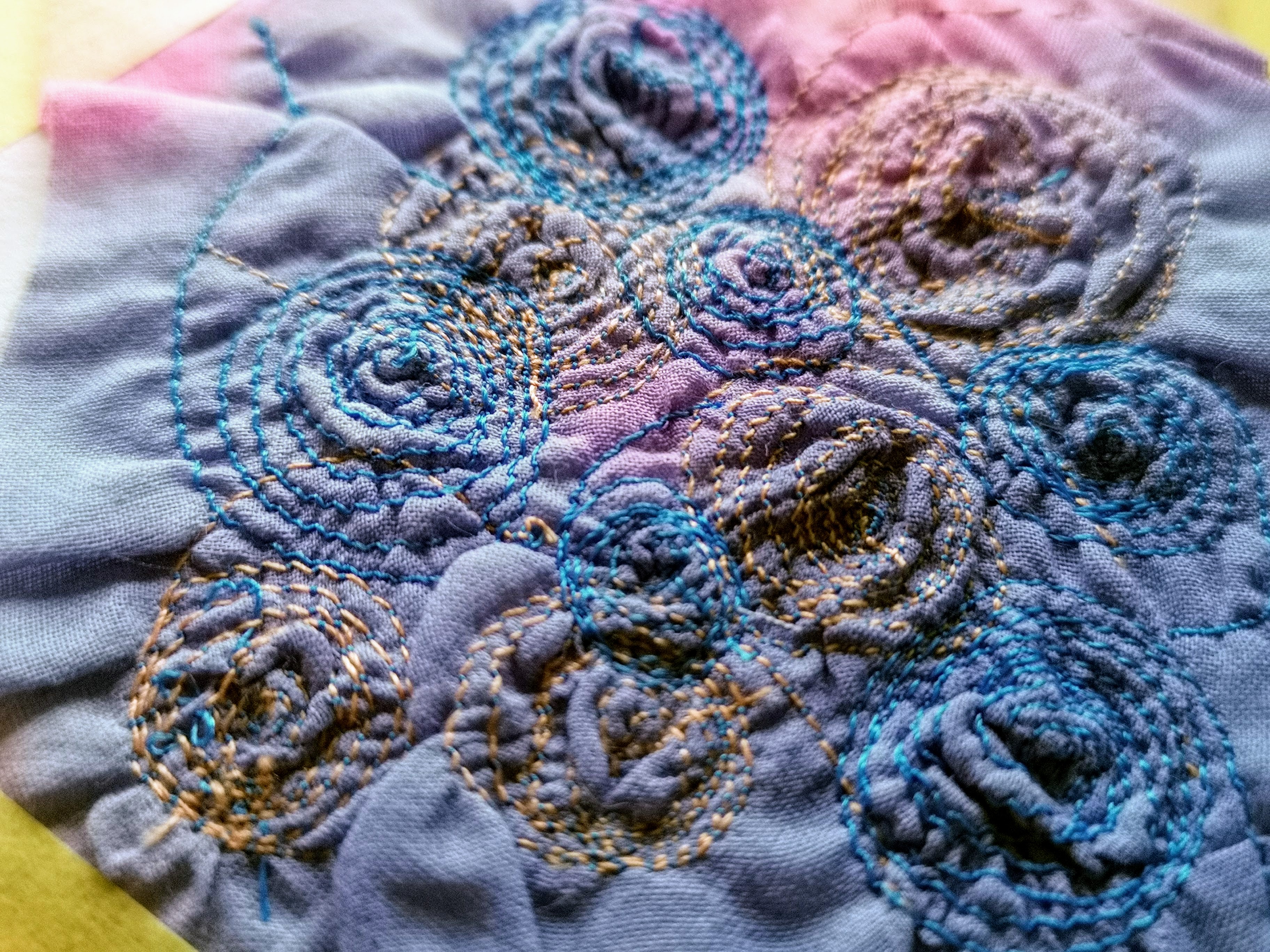 One last bonus pic: I overlaid this sample with the remaining fabric from the top layer showing the cut out shapes. As it doesn't lie flat it adds another dimension to the sample, an effect I quite like