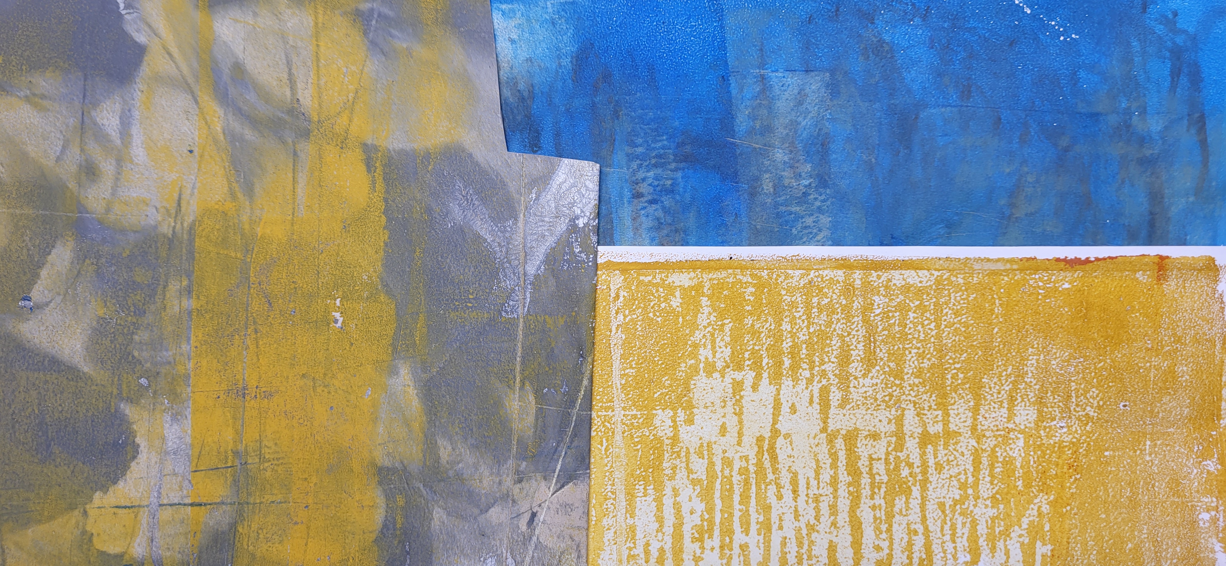For this design exercise I also started by painting the papers I would use. The inspiration for these were my textures, the plates were used to make rubbings with wax crayons or served as inspiration. Using my big Gelli plate enabled me to achieve the textured backgrounds on the papers as well as the worn look of the industrial site.